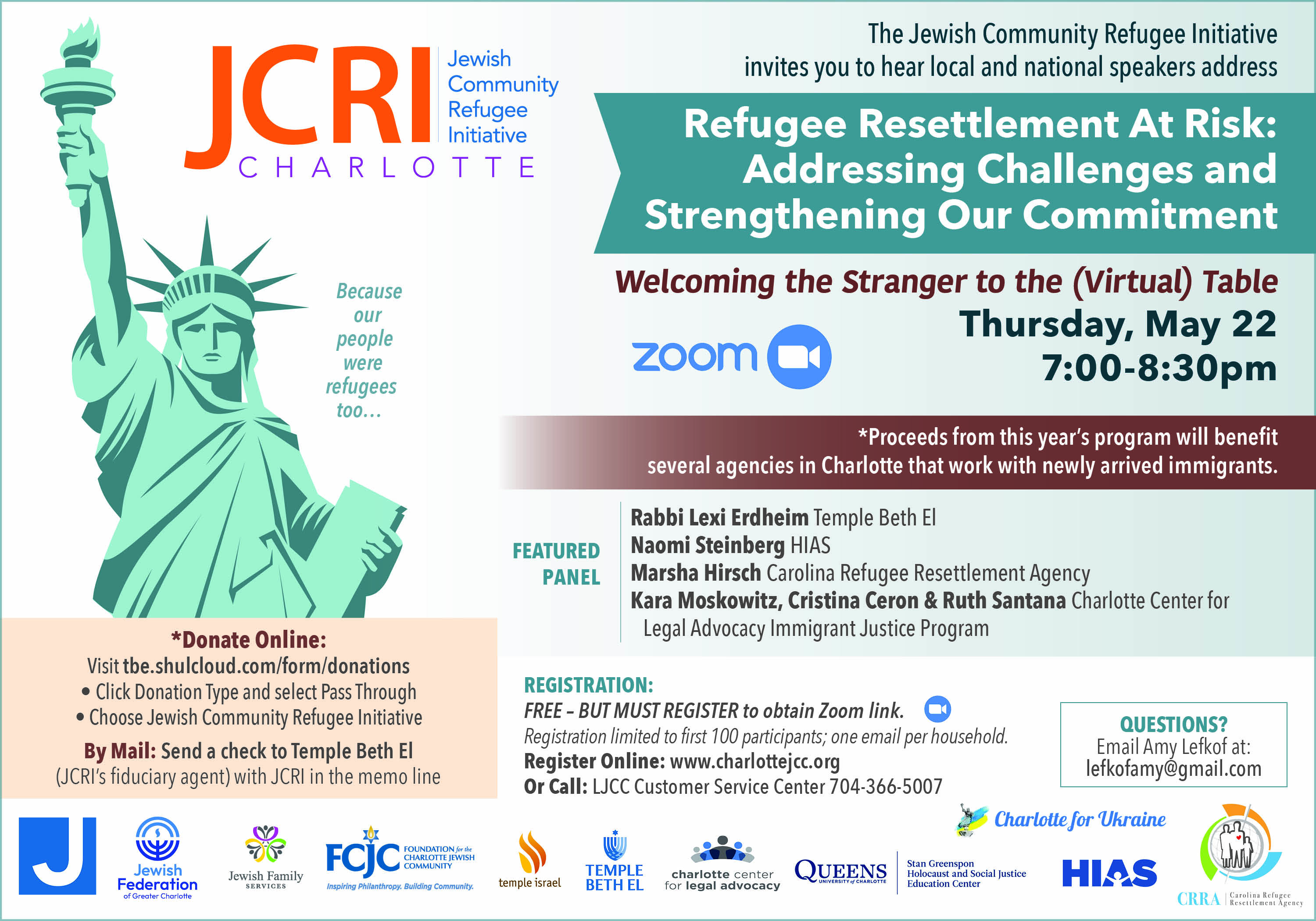 Join the Jewish Community Refugee Initiative (JCRI) for an inspiring event featuring local and national speakers discussing how we can support refugees in our communities.