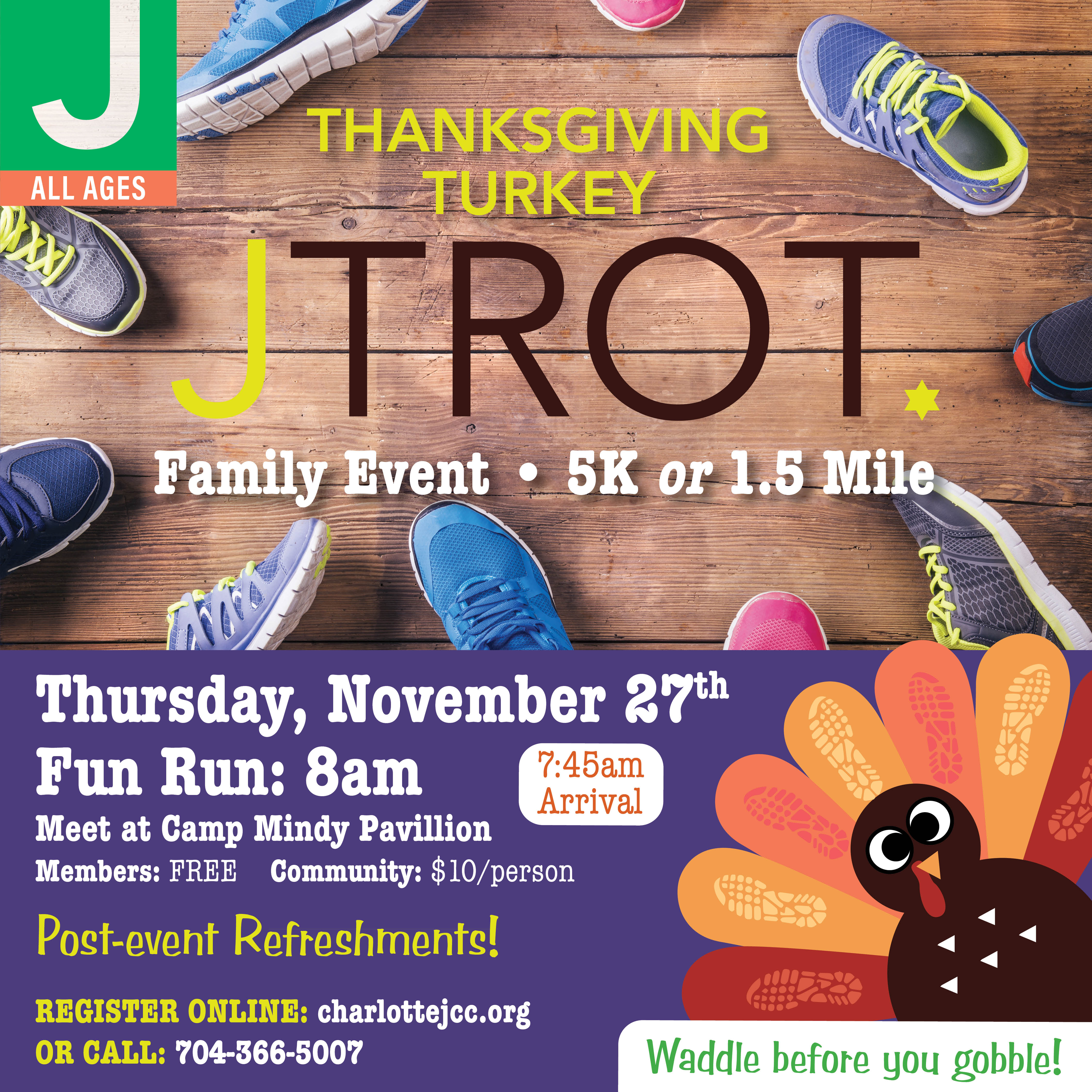 The Thanksgiving J Trot is back — bring the whole family for a morning of fun, fitness, and fresh air!