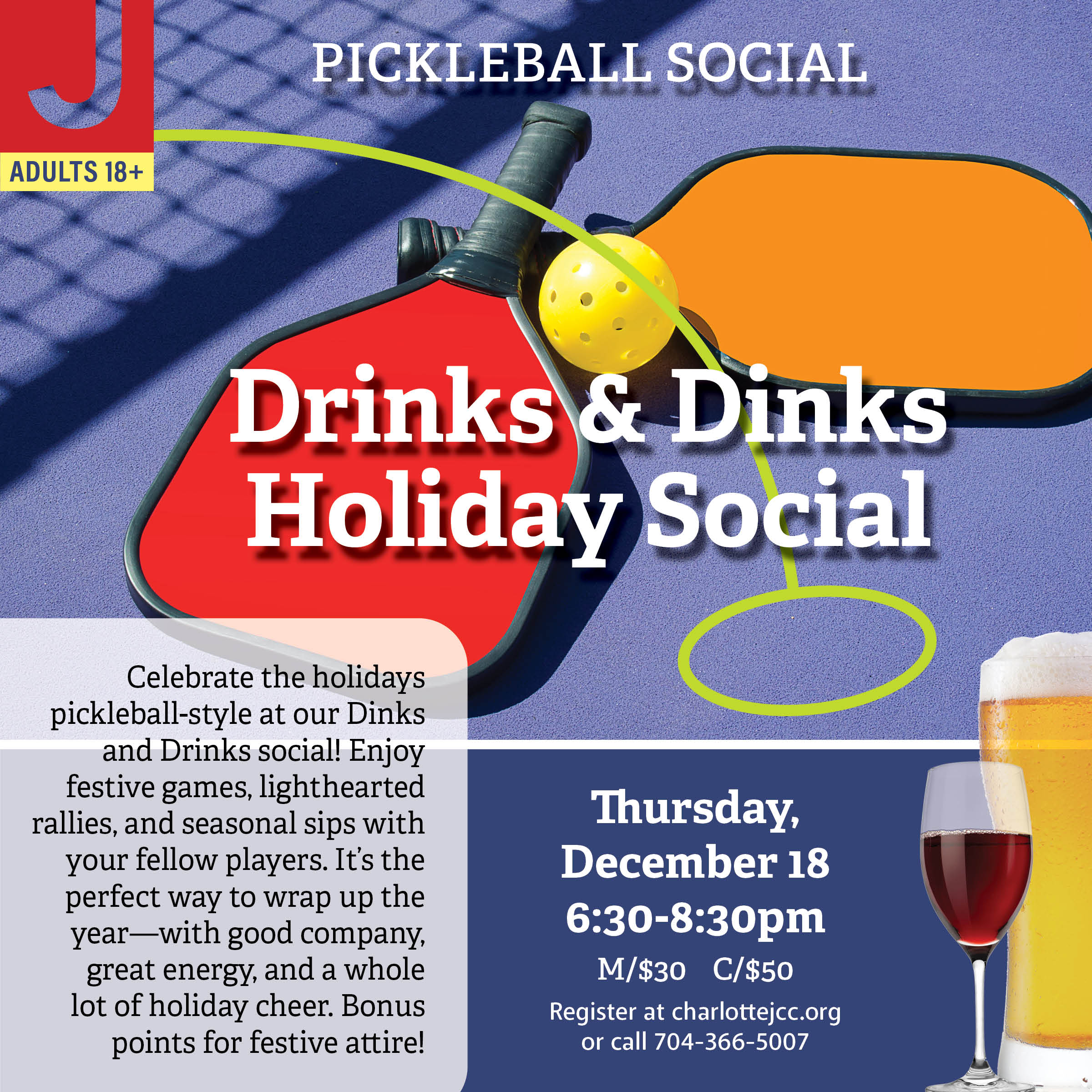 Celebrate the holidays pickleball-style at our Dinks and Drinks social! Enjoy festive games, lighthearted rallies, and seasonal sips with your fellow players. It's the perfect way to wrap up the year - with good company, great energy, and a whole lot of holiday cheer. Bonus points for festive attire!