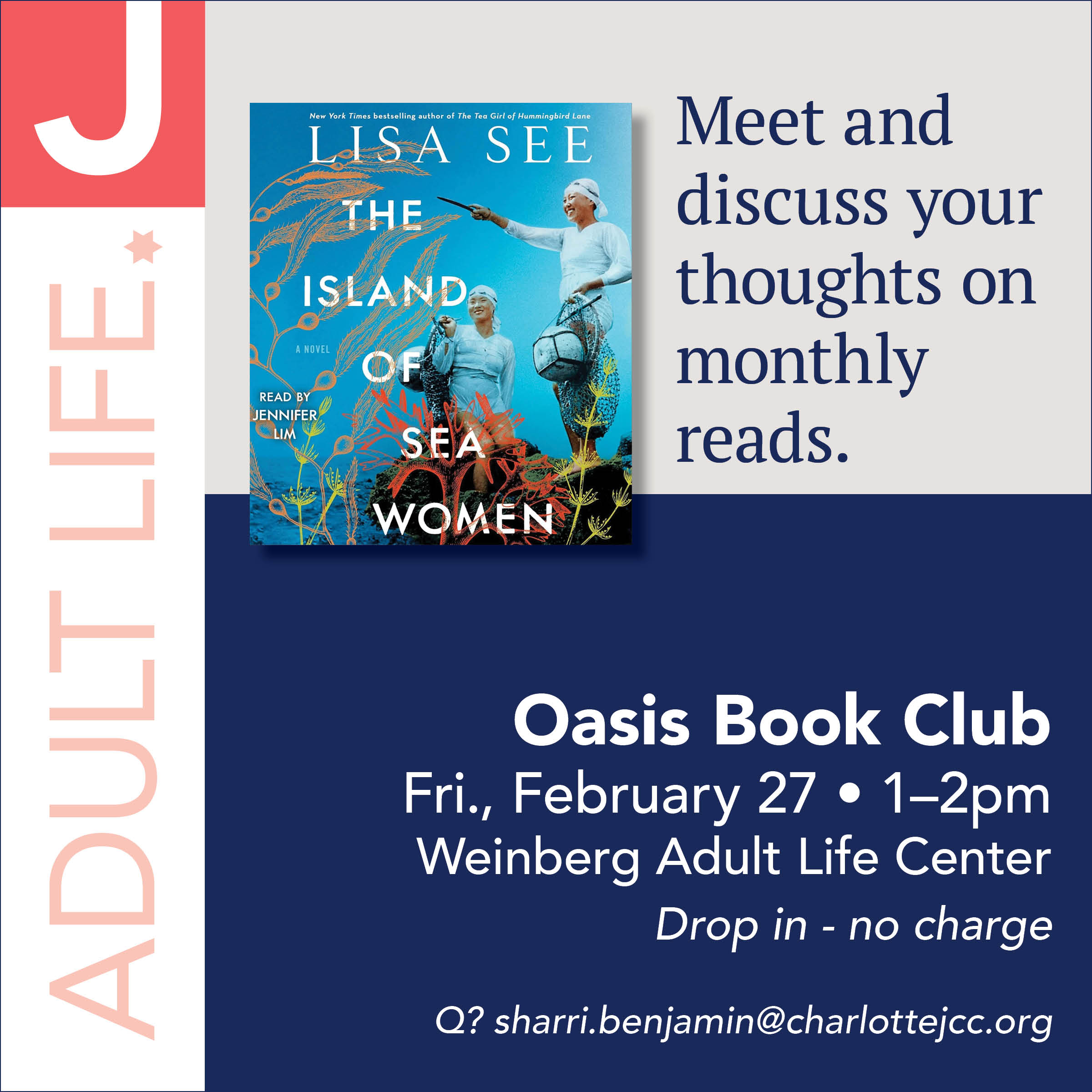 Join the Oasis Book Club for engaging discussion and meaningful connection through literature. Each month, participants come together to share thoughts and perspectives on a selected book in a welcoming, relaxed environment.