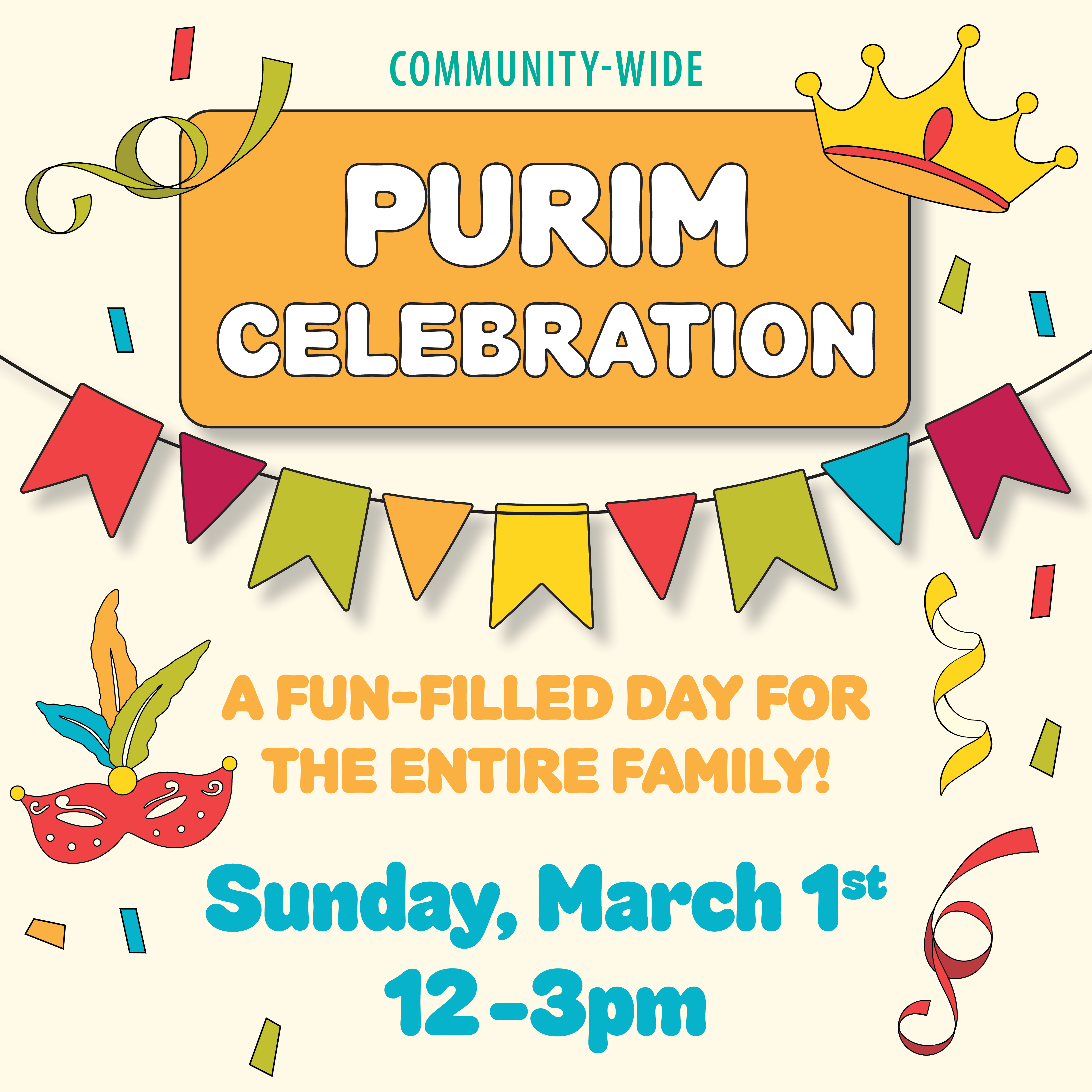 Join us for a Purim celebration! Come in your best costume and be part of the Purim spirit.